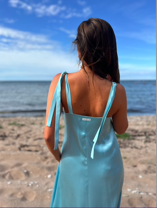 This sleeveless dress features adjustable straps that can be tied into a bow or a simple, stylish knot. Designed for movement, it’s light, loose, and perfect for special occasions or relaxed beach days. Ideal for dancing, pregnancy, and even breastfeeding, it helps women feel free and beautiful. Made from natural fabric, it feels soft and breathable on the skin. And with deep, practical pockets spacious enough to replace a small purse, this dress combines elegance with effortless comfort.